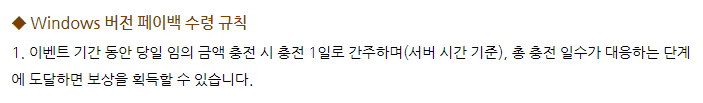 이벤트 시간 내만 충전 및 페이백 보상 혜택이 적용됩니다. 또한 이벤트 혜택은 한국시간으로 6월 27일(목) 17:00 이후에 적용되니 참고하세요 ^^