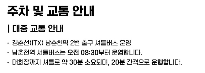 대회장까지 셔틀로 약 30분 정도 소요 되니 참고해주세요~